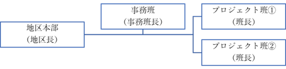 地区本部は地区長がリーダーとなるチームです。地区長補佐もここに所属します。